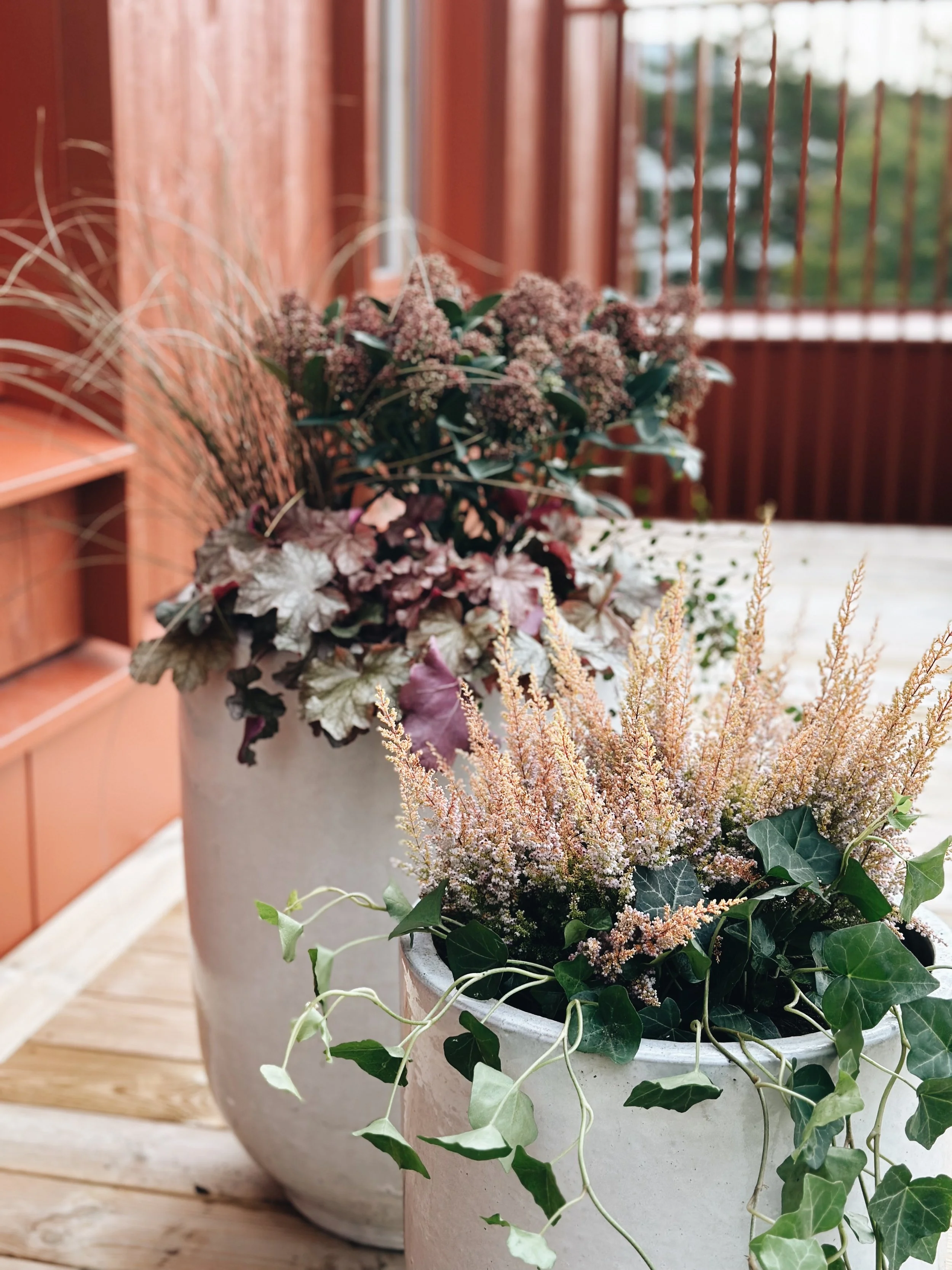 Jag erbjuder hjälp med att planera och plantera krukor och lådor för balkonger och uteplatser.